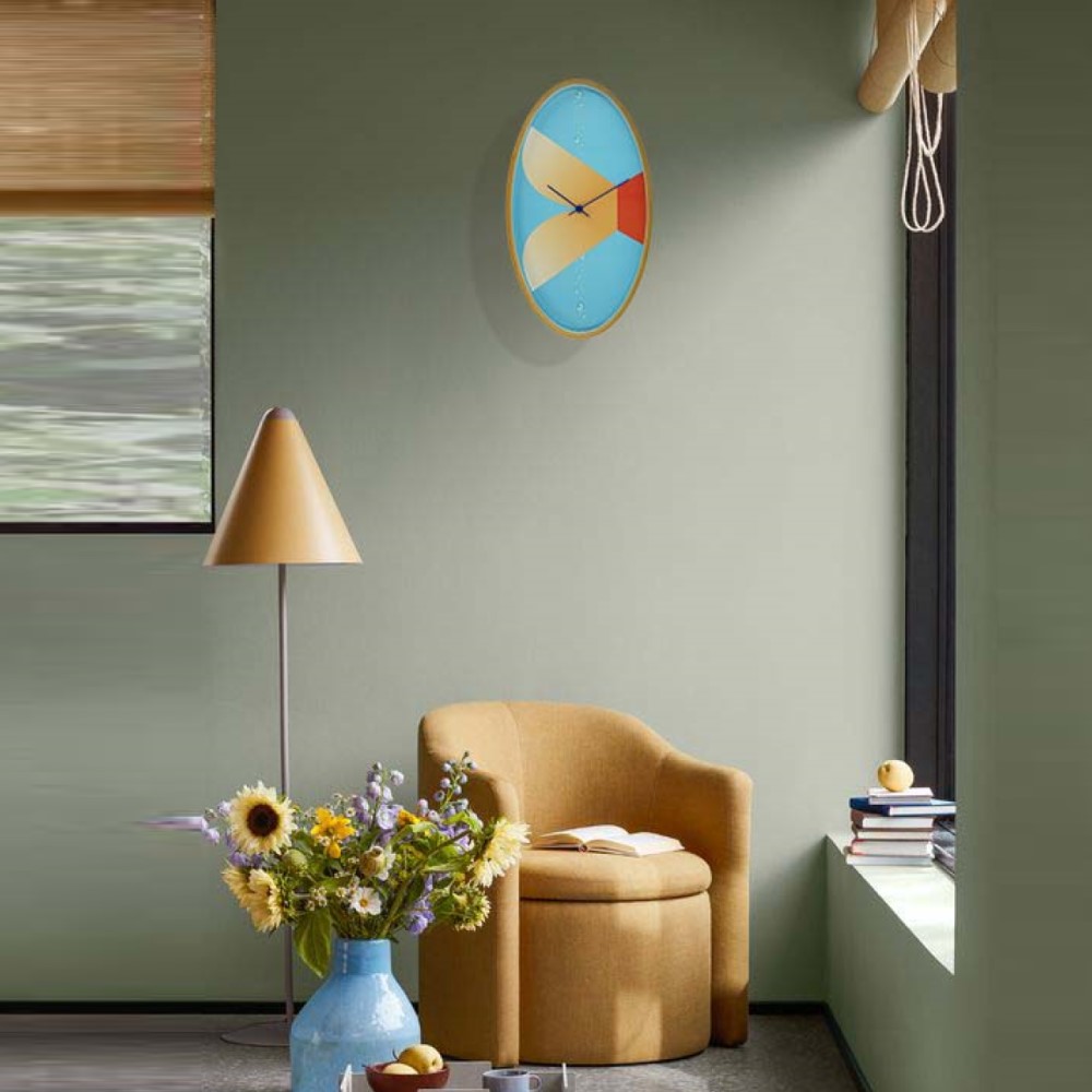 The Petal Geometry Oval Wall Clock blends bold geometric forms with a sleek oval frame to create a truly artistic timepiece. Its refreshing blue background evokes calm, while the yellow and orange petal-like shapes add vibrancy. Subtle bubble-like details enhance its natural, playful character. More than just a clock, this piece serves as wall art, making it perfect for living rooms, reading nooks, or creative studios — a modern designer accent that brings warmth and elegance to any space.