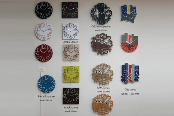 Our productions include a wide range of decorative wall clocks designed for modern interiors.
